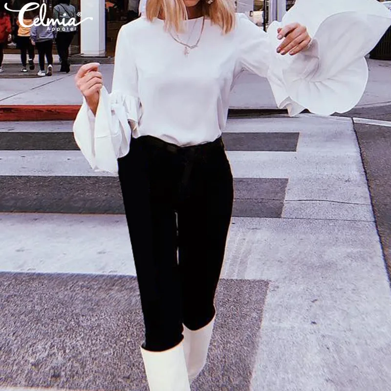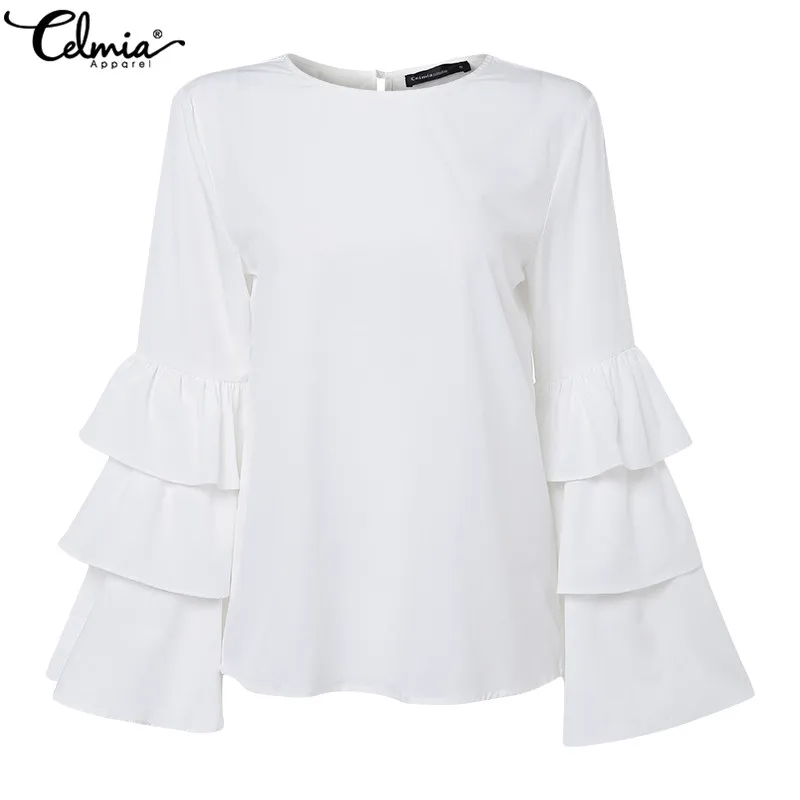 Top Fashion 2019 Celmia Women Long Puff Sleeve Blouses Shirts Lapel Buttons Casual Loose Solid Party Tops Work Blusas Plus Size,Lace Shirts Women Fashion White Blouses Celmia 2019 Autumn Sexy Long Flare Sleeve Ruffles Tops Casual Loose Blusas Mujer S-5XL, Lace Shirts Women Fashion White Blouses Celmia 2019 Autumn Sexy Long Flare Sleeve Ruffles Tops Casual Loose Blusas Mujer S-5XL