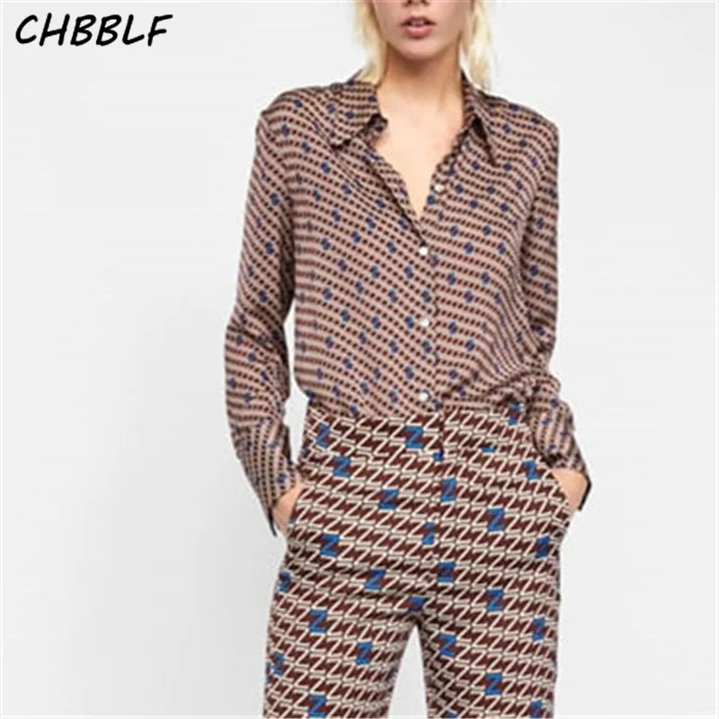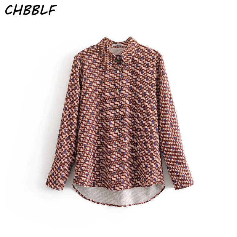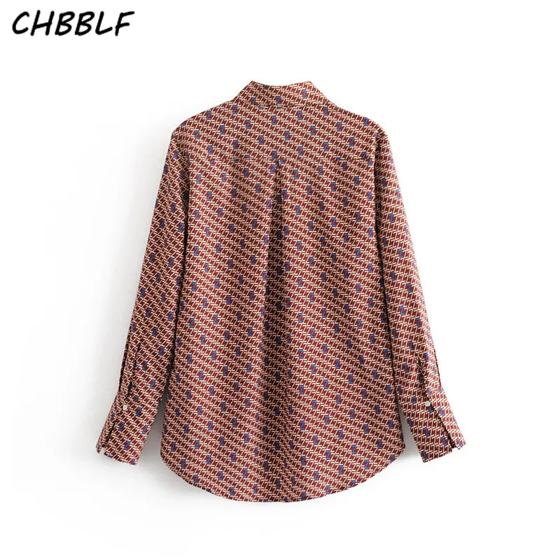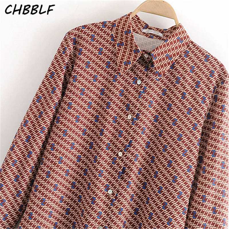 Promo CHBBLF women turn down collar loose blouse long sleeve print shirt casual wear tops blusas DFT27249