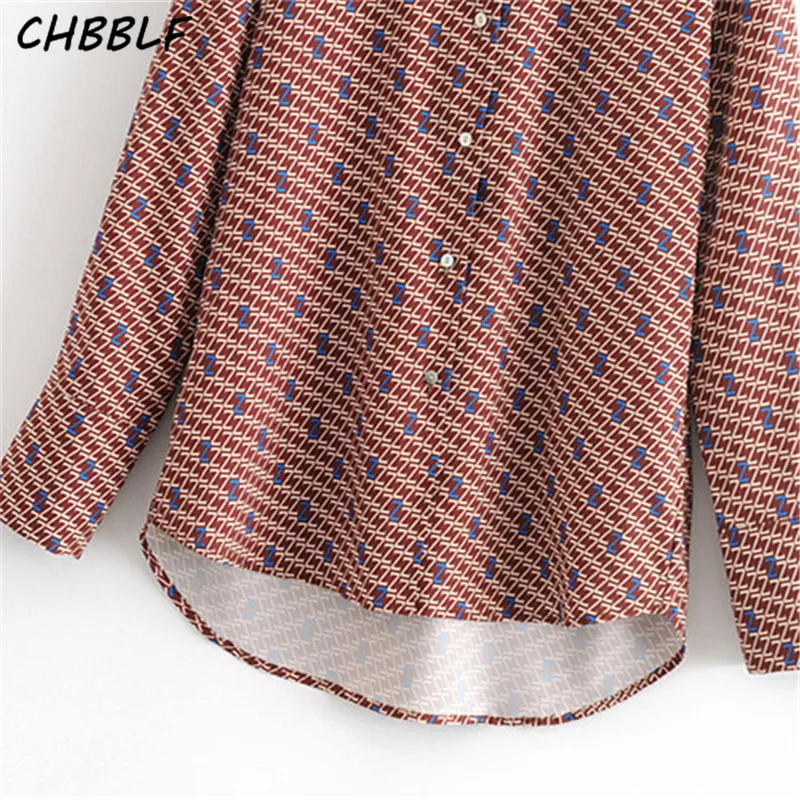 awesome CHBBLF women turn down collar loose blouse long sleeve print shirt casual wear tops blusas DFT27249