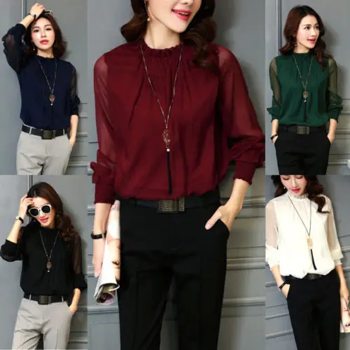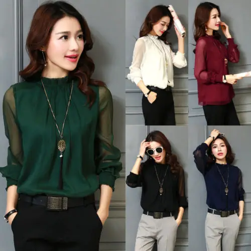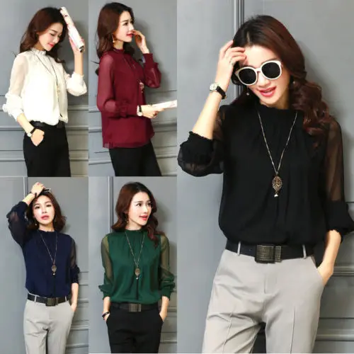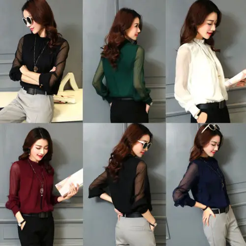 awesome Women Blouses 2017 Autumn Long Sleeve Chiffon Blouse Women's Clothing 5 Colors Solid Sexy Mesh Wome
