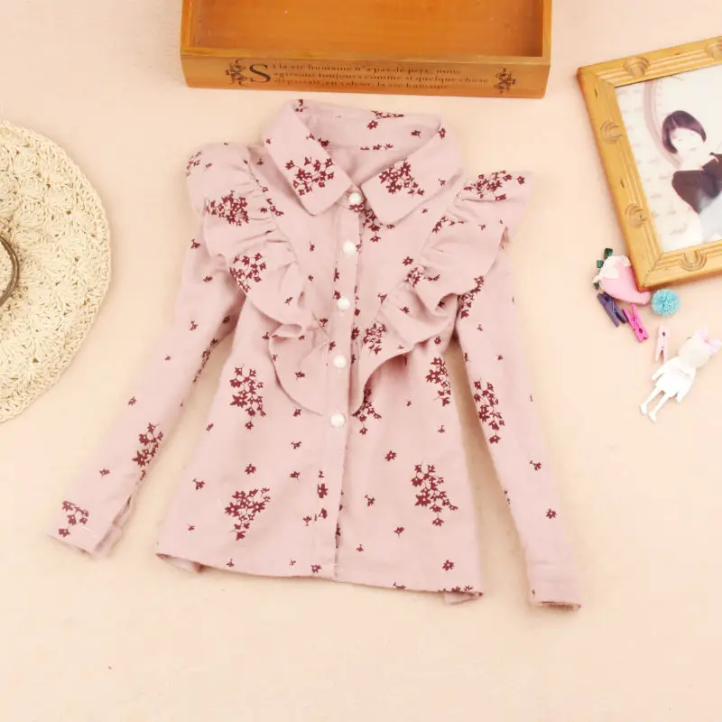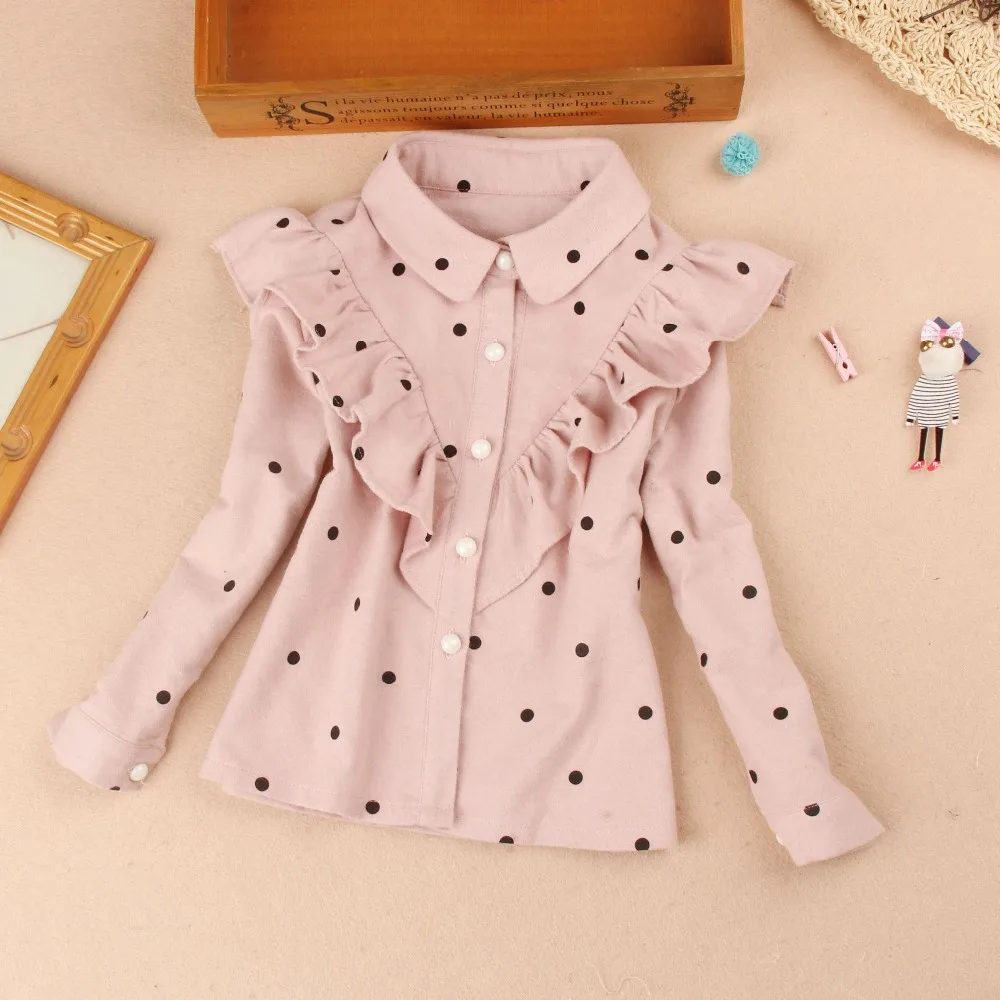 Best New Fall Cotton Dot Blouse Girl Teen Pink Long Sleeve Shirt Casual Cotton Kids Girls Clothes Autumn