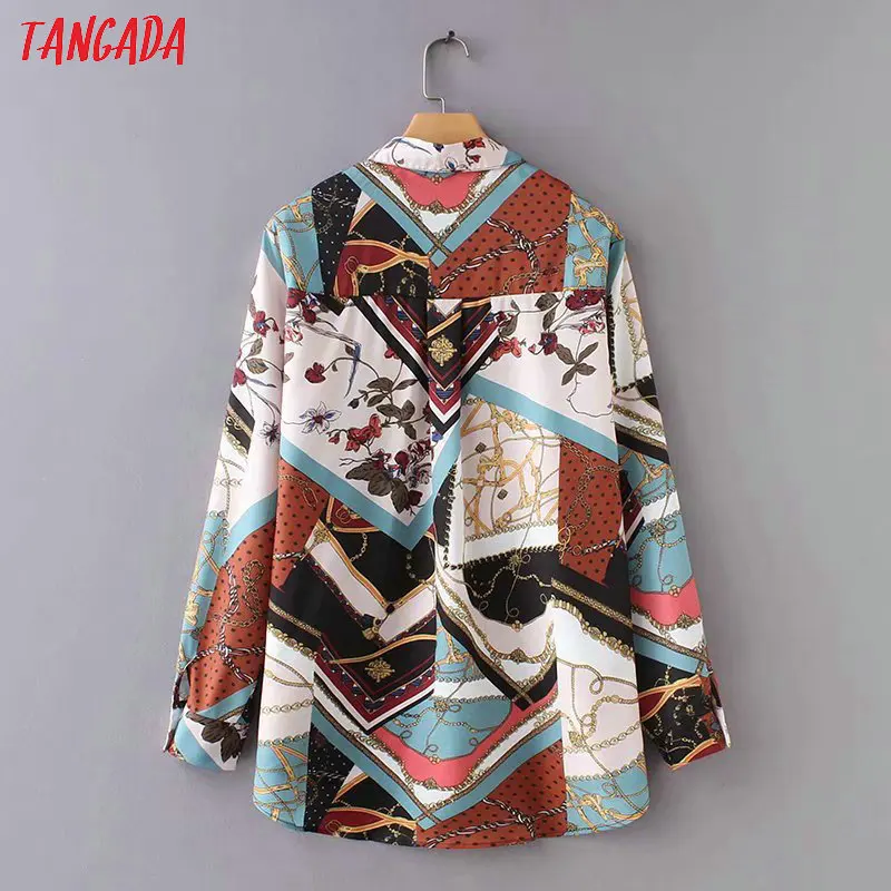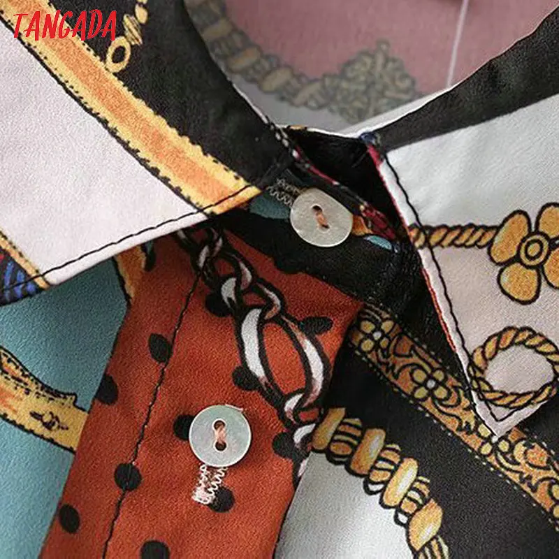 price cut Tangada 2019 fashion women print blouse shirts vintage turn down collar long sleeve shirt chiffon l