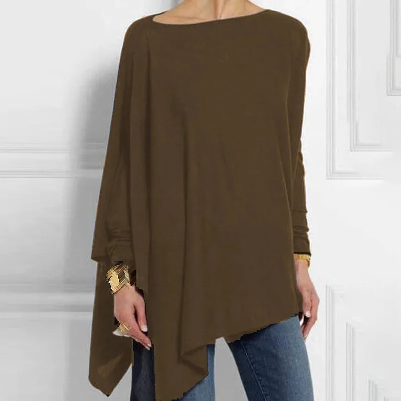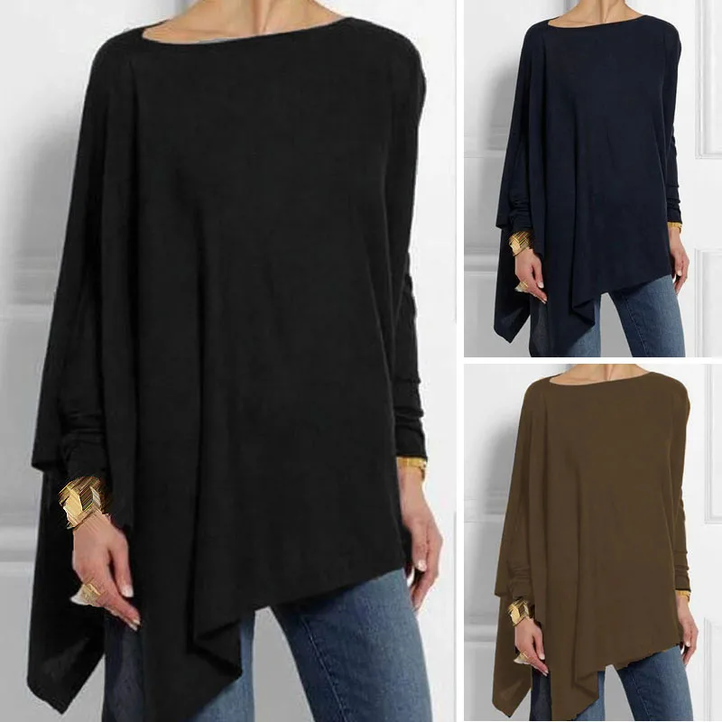 amazing Women Tops Pullover Shirt Autumn Spring O-Neck Long Sleeve Irregular Blouse Casual Loose Solid Colo