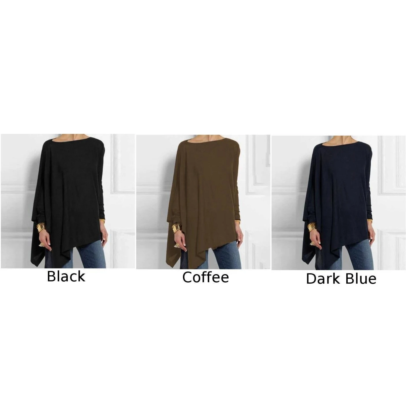 Ideal Women Tops Pullover Shirt Autumn Spring O-Neck Long Sleeve Irregular Blouse Casual Loose Solid Colo