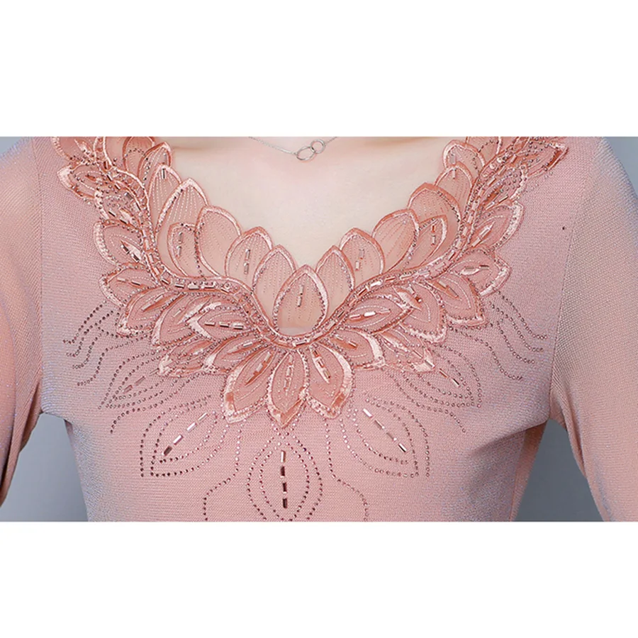 Mesh blouses bottoming shirt 2019 new autumn women long-sleeved Diamonds plus size mesh blouse shirt top blusas,Autumn fashion embroidery hot drilling long sleeve women blouse shirt casual plus size elegant blouses tops femme blusas, Autumn fashion embroidery hot drilling long sleeve women blouse shirt casual plus size elegant blouses tops femme blusas