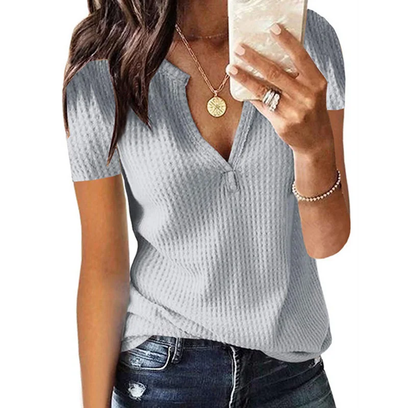 Promo VIEUNSTA Women Sexy Deep V-neck Knitted Womens Tops and Blouses 2019 Summer Off Shoulder Slim Fit S