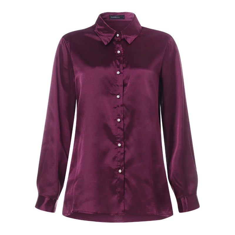 low cost Fashion Satin Blouse Celmia Women Elegant Shirts Stylish Tops Lapel Neck Long Sleeve Casual Buttons