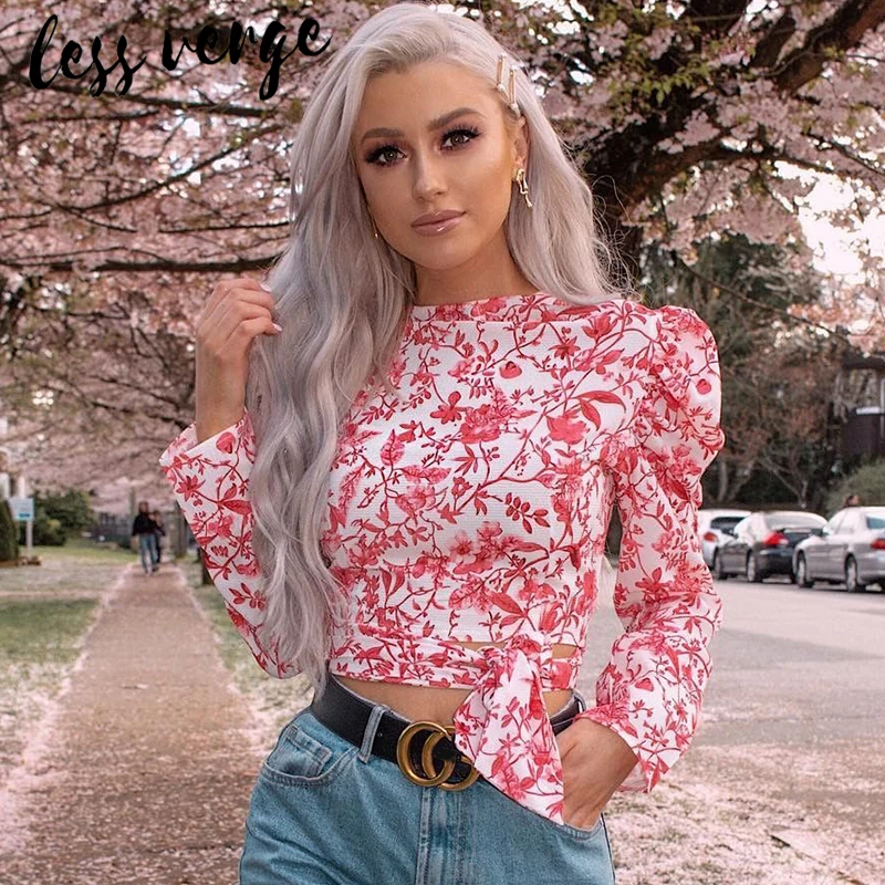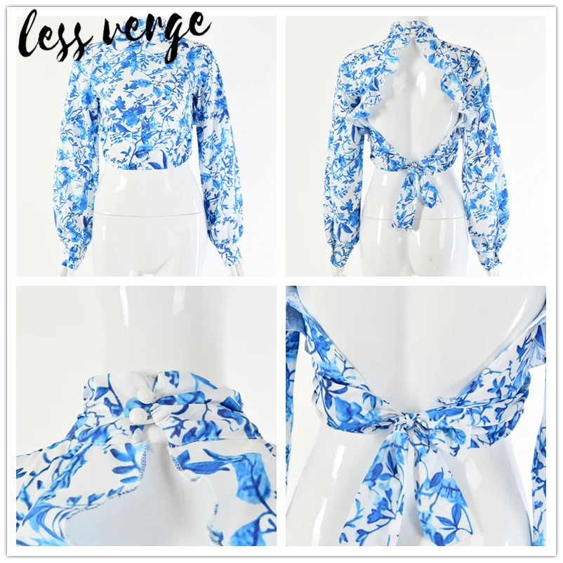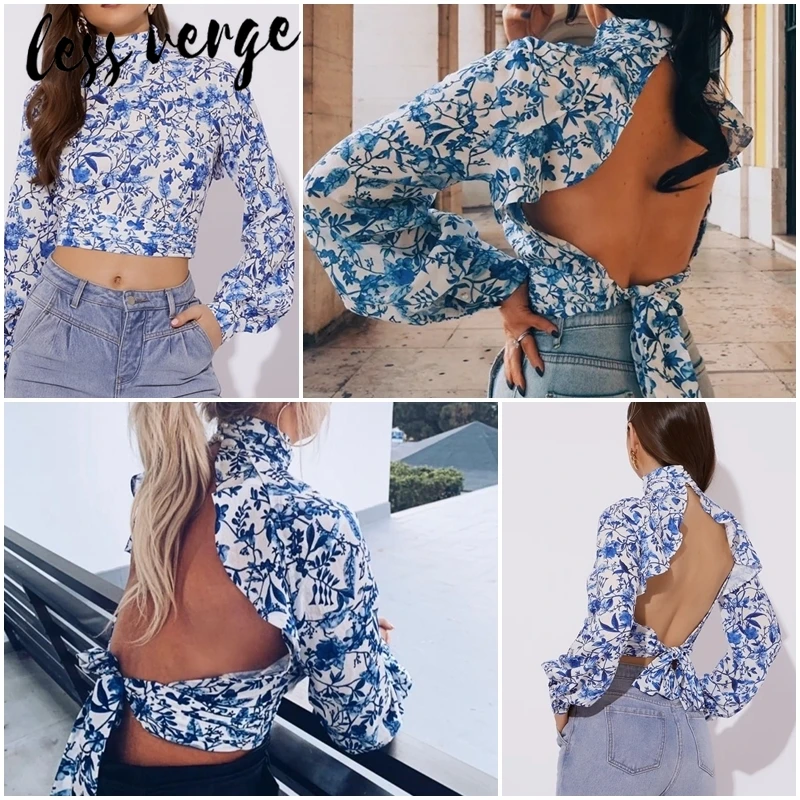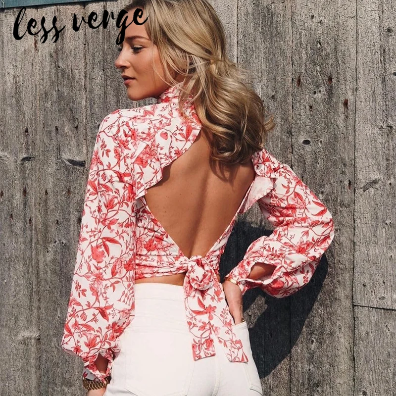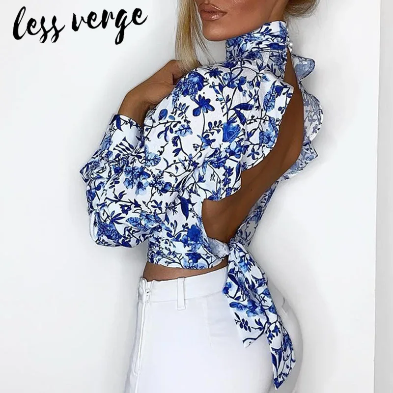 discounted lessverge Floral backless sexy blouse shirt women Long sleeve turtleneck boho autumn top blouse Lad