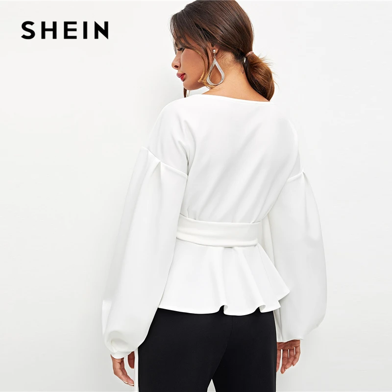 SHEIN Sexy One Shoulder Puff Sleeve Peplum Knot Belted Top Blouse Women Summer 2019 Solid Ruffle Elegant Party Blouses,SHEIN Plunge Neck Tie Waist Peplum Top White Solid Slim Fit Womens Tops and Blouses Sexy Deep V Neck Summer Short Sleeve Blouse, SHEIN Plunge Neck Tie Waist Peplum Top White Solid Slim Fit Womens Tops and Blouses Sexy Deep V Neck Summer Short Sleeve Blouse