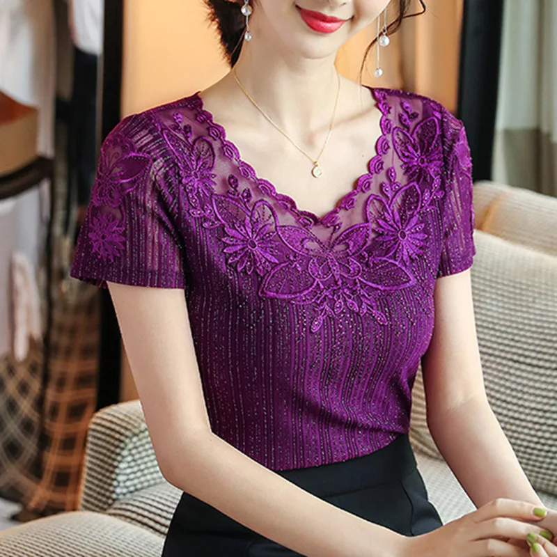 4XL plus size Women's shirt Fashion short sleeve summer tops shirt Elegant Slim Embroidered Diamond women blouse shirt,Women blouse shirt New 2019 women blouses long sleeve Mesh shirt Slim Hollow out lace blouse plus size blouse women tops blusas, Women blouse shirt New 2019 women blouses long sleeve Mesh shirt Slim Hollow out lace blouse plus size blouse women tops blusas