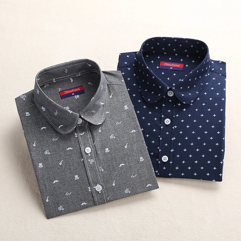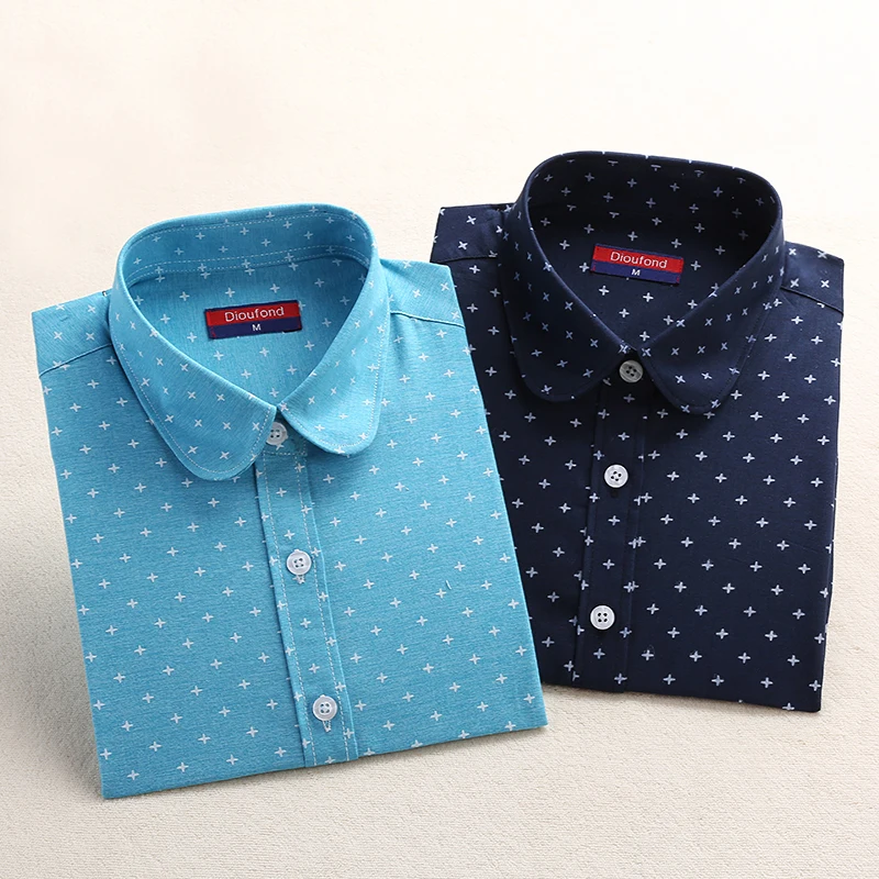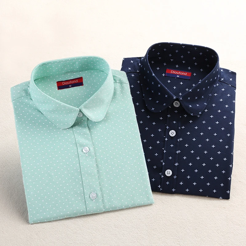 price cut Dioufond Polka Dot Women Shirt Long Sleeve Blouses Cotton Autumn Ladies Tops Turn Down Collar Plus
