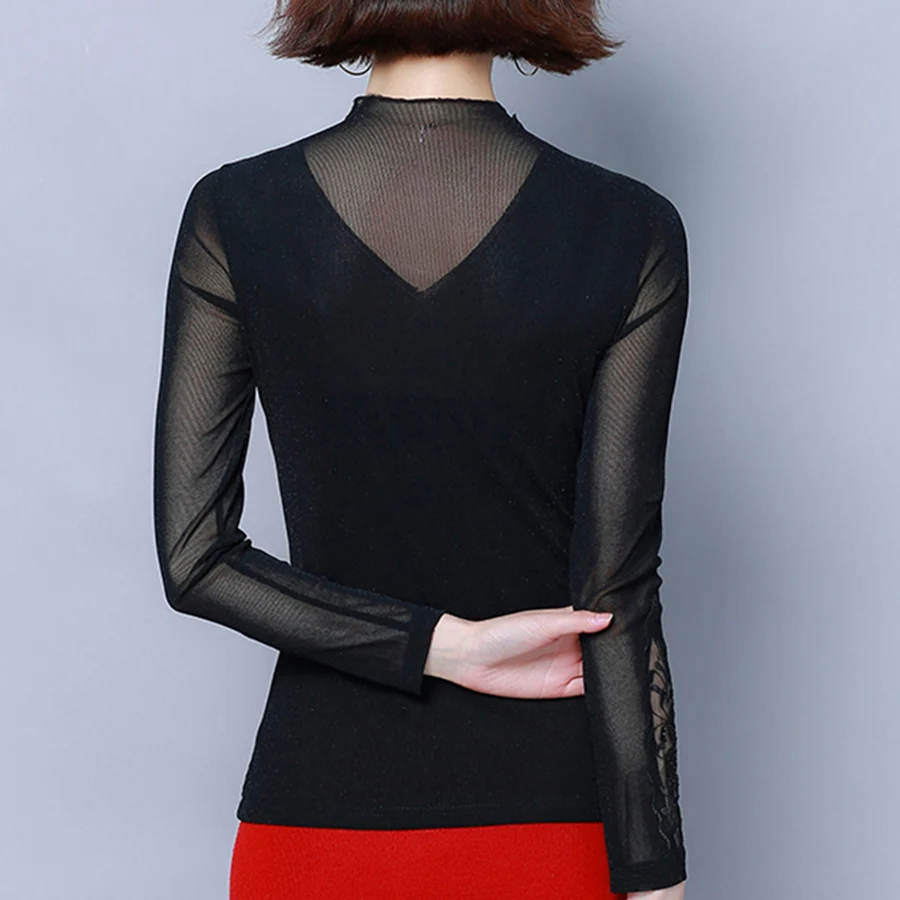 Greatest Mesh blouses bottoming shirt 2019 new autumn women long-sleeved Diamonds plus size mesh blouse shir