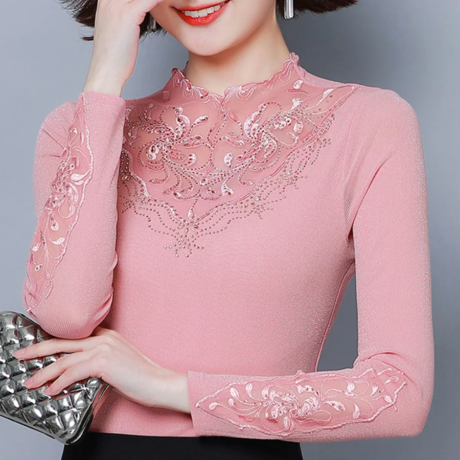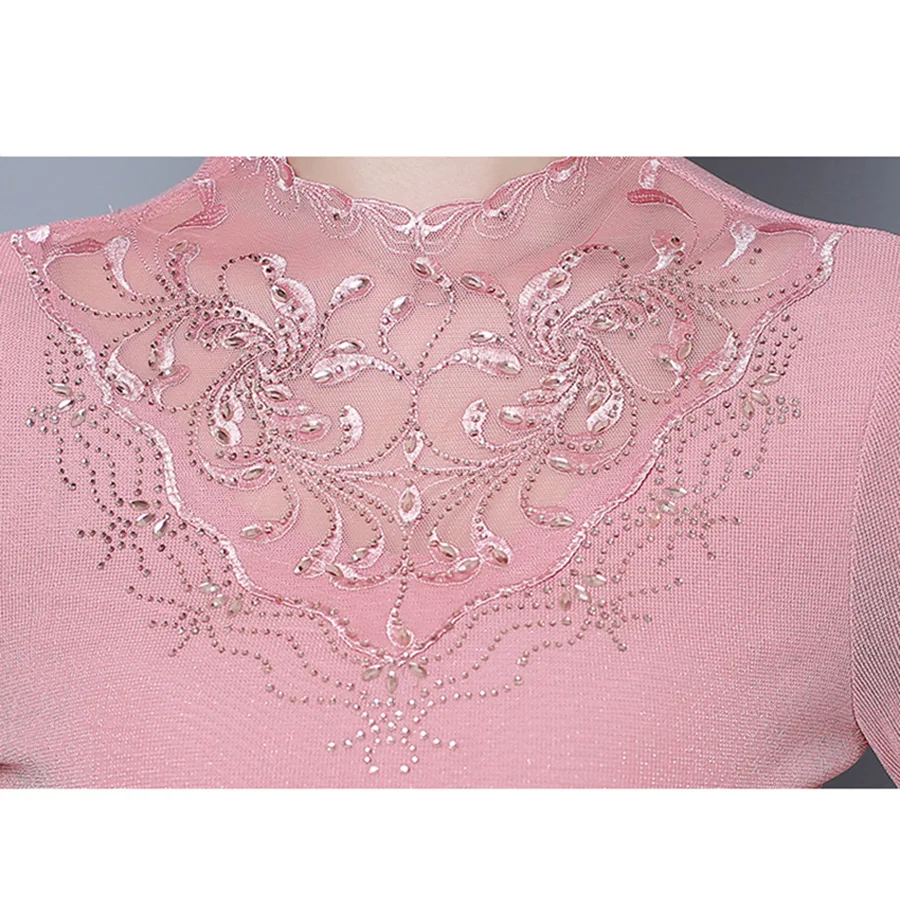 Lace blouse bottoming fashion shirt slim 2019 new autumn women long sleeve Diamonds mesh blouse shirt top blusas,Lace tshirt female 2019 autumn embroidery Diamonds Slim long sleeve mesh shirt top t-shirt bottoming shirt top plus size t shirt, Lace tshirt female 2019 autumn embroidery Diamonds Slim long sleeve mesh shirt top t-shirt bottoming shirt top plus size t shirt