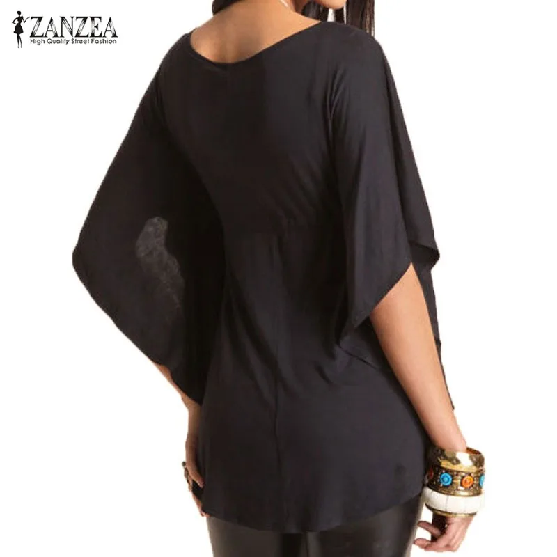 awesome Sleeve Tops Women Asymmetrical Blouse 2019 ZANZEA Fashion Sexy V Neck Shirts Female High Waist Chem