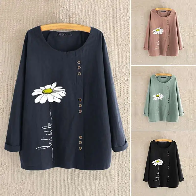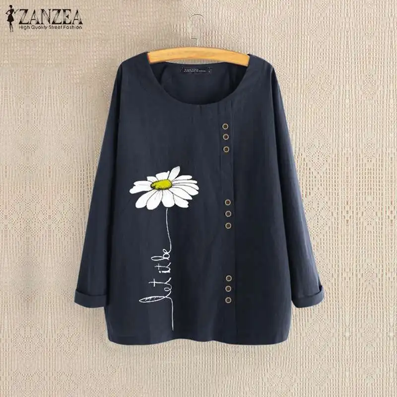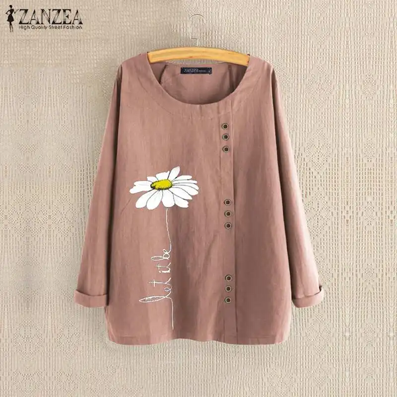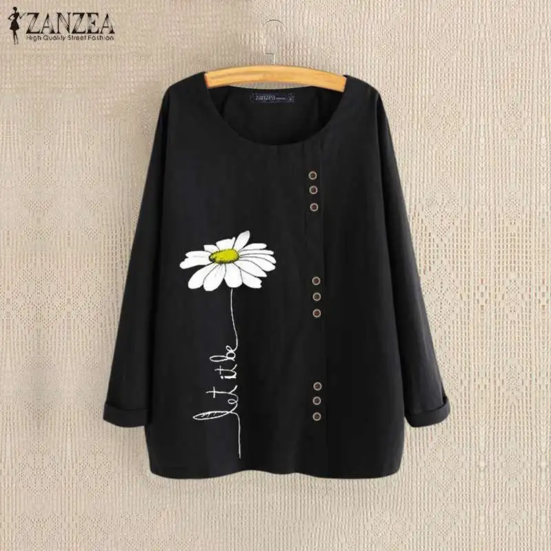amazing Elegant Daisy Printed Tops Women's Autumn Blouse 2019 ZANZEA Casual Long Sleeve Shirt Female O Neck