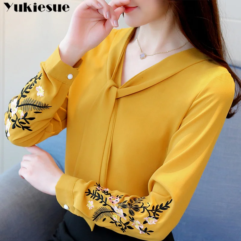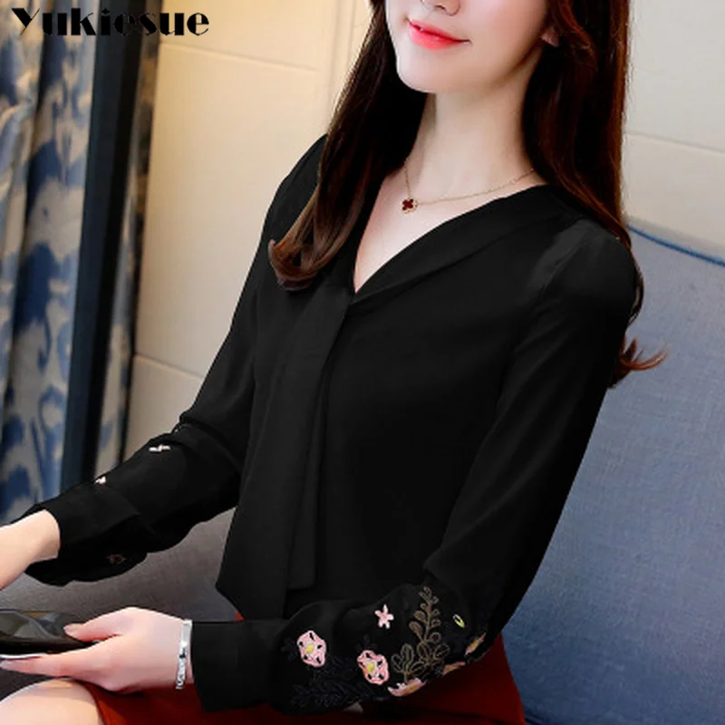Greatest Long sleeve embroidery chiffon blouse womens tops and blouses shirt 2019 office lady shirt women to