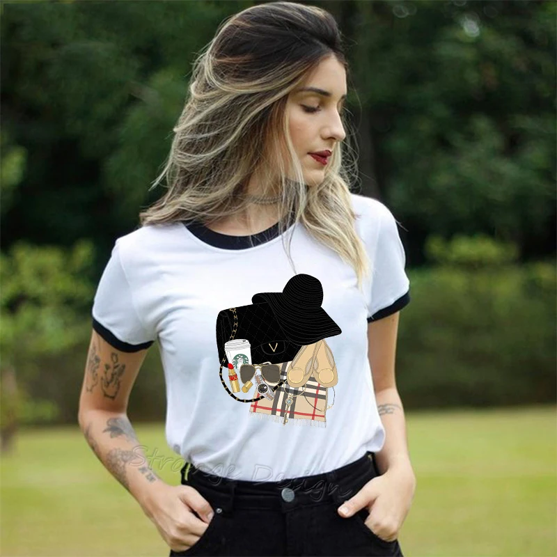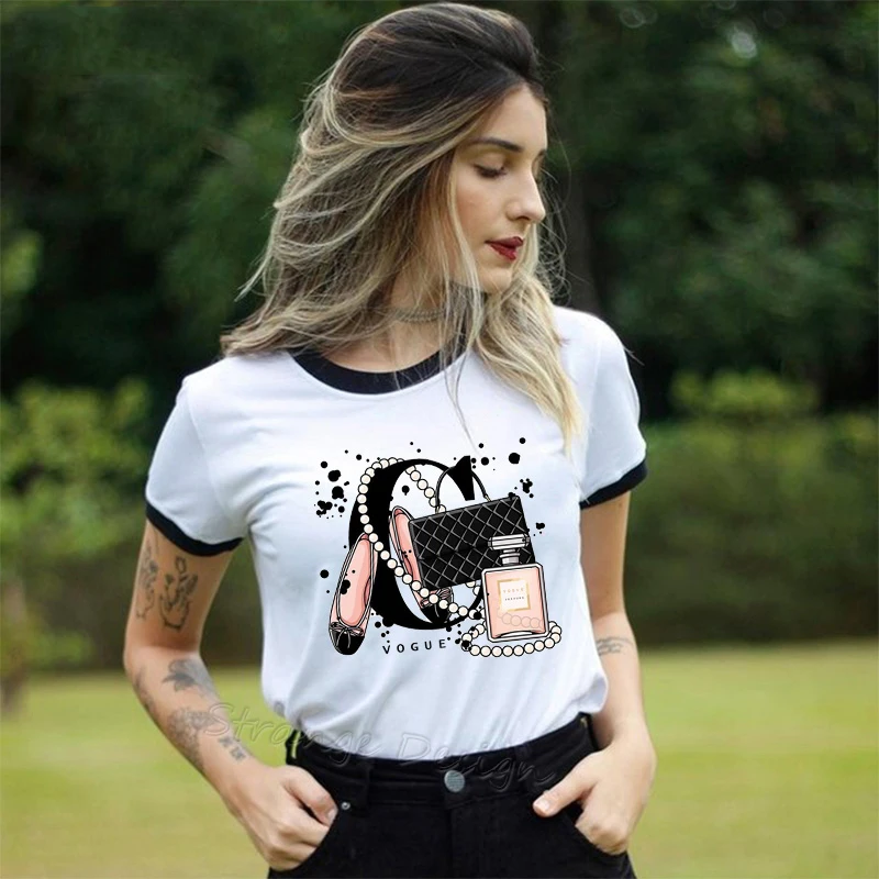Greatest Summer Illustrations Camera Bag Perfume Flowers Vogue Luxury Brand Tshirt Print Section Short Sleev