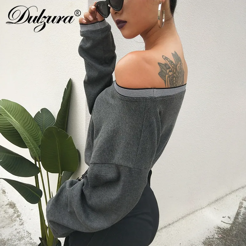 lower price Dulzura long sleeve crop top 2018 autumn winter women casual tshirt stretch neck collar patchwork t