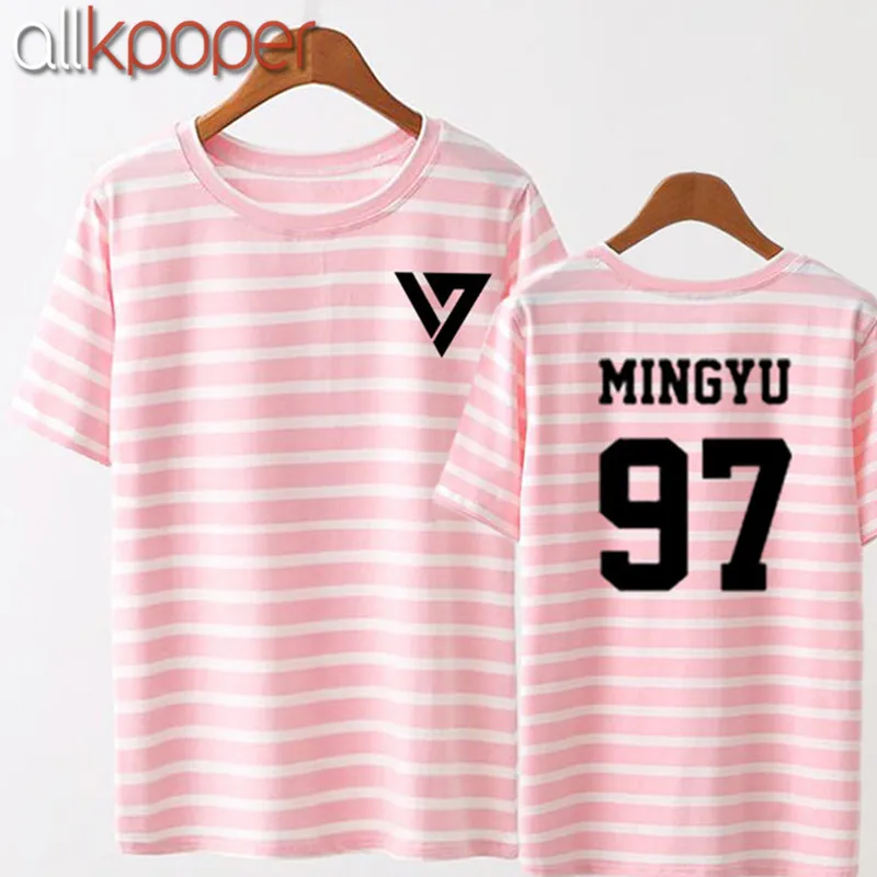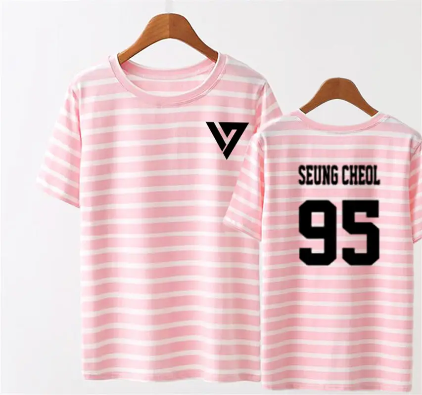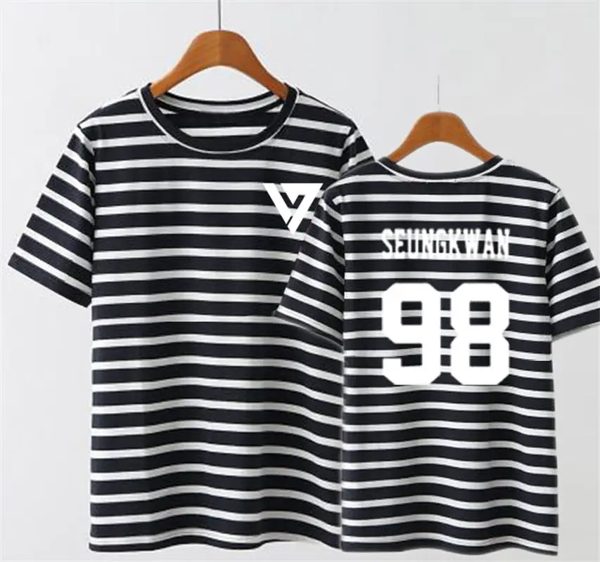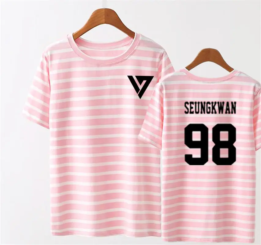 discounted ALLKPOPER Kpop Seventeen 17 Tshirt Stripe T-shirt 2019 New Women Men VERNON WONWOO Short Sleeve Tee
