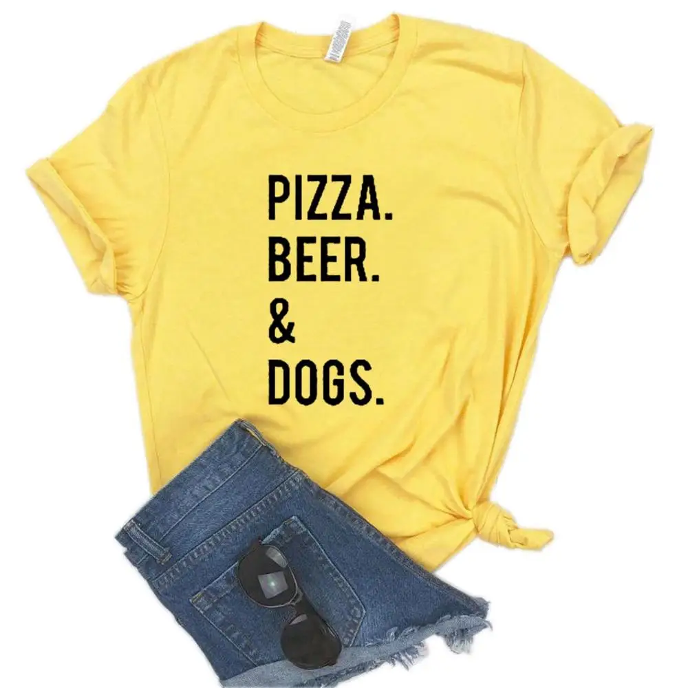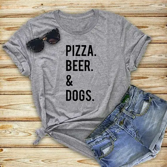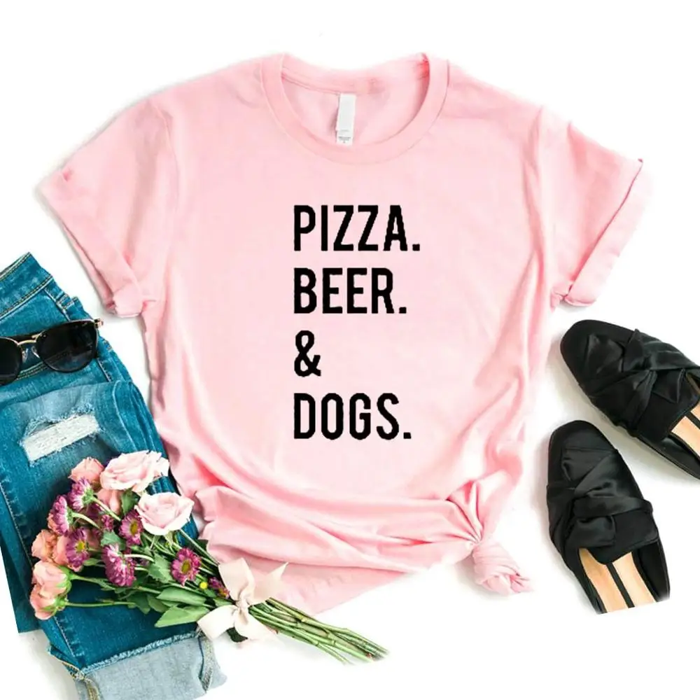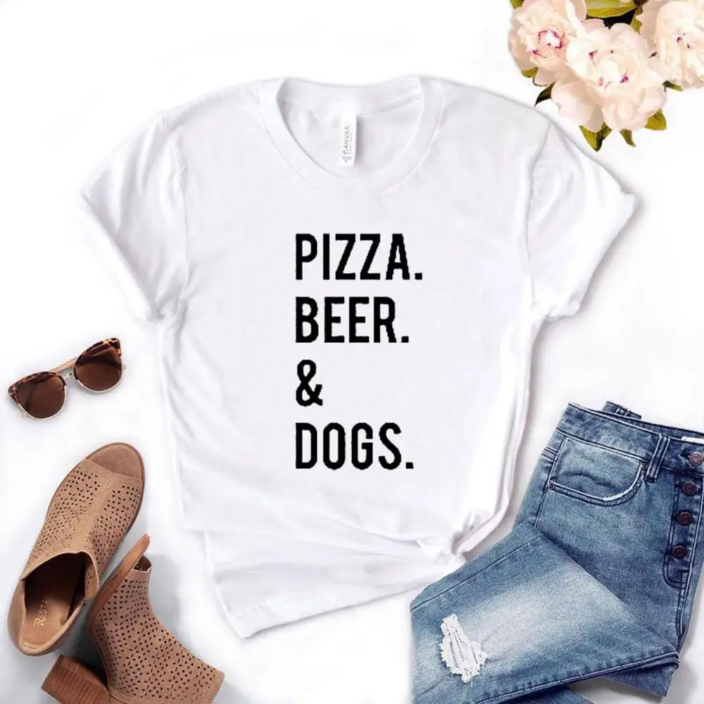 New PIZZA BEER AND DOGS Print Women tshirt Cotton Funny t shirt Gift For Lady Yong Girl Street Top Tee