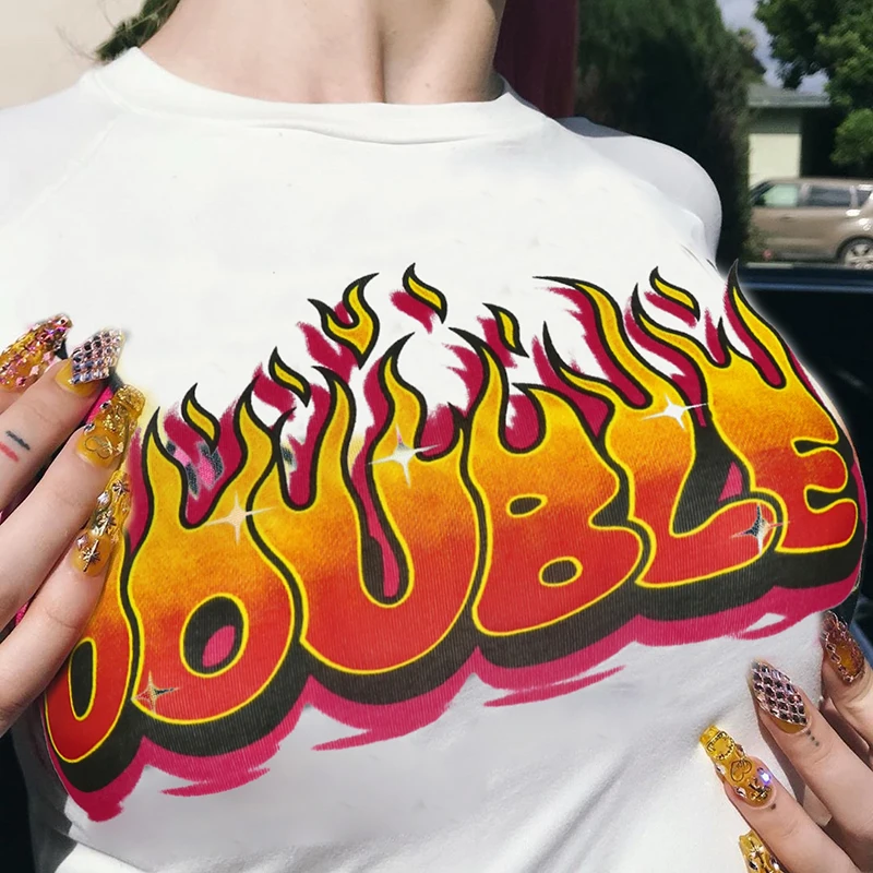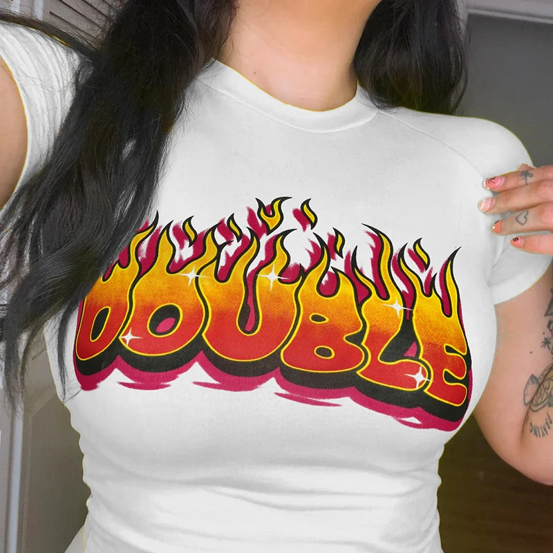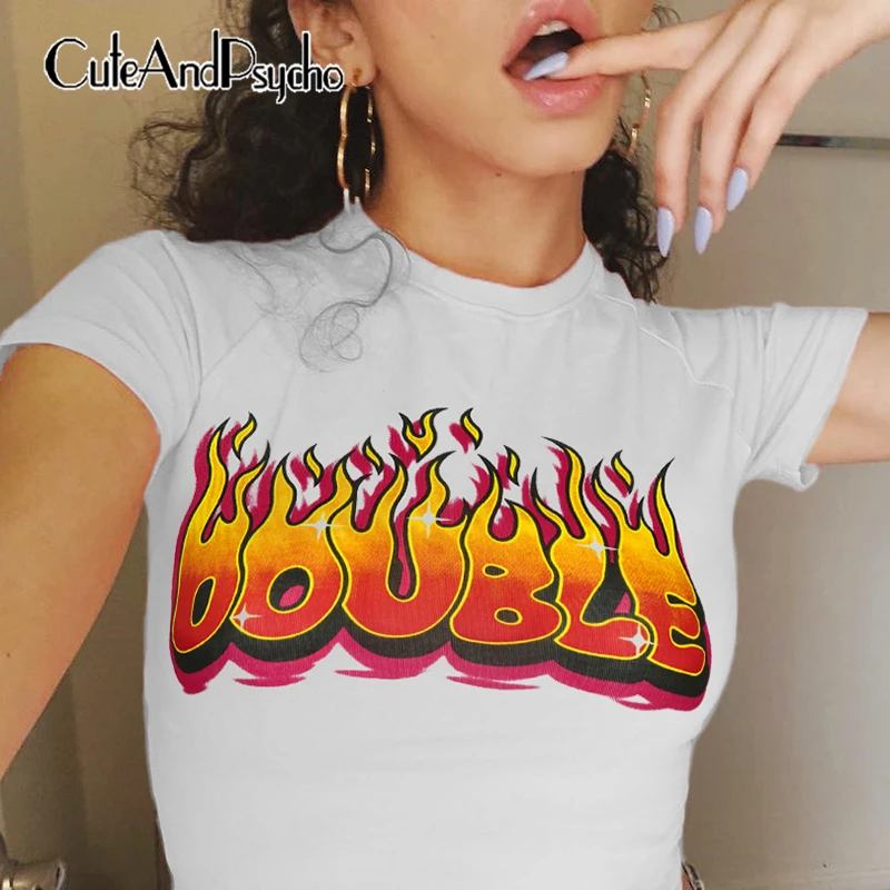 Ideal 2019 Fire Print Sexy Women Summer TShirt Short Sleeve White Basic Harajuku Tee Shirt Casual Crop To