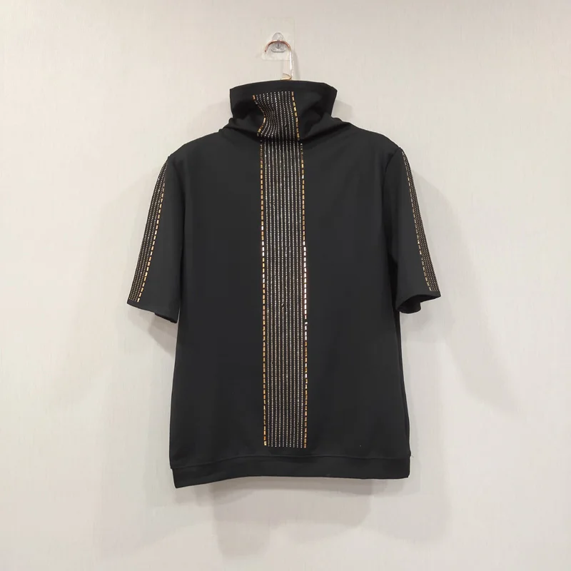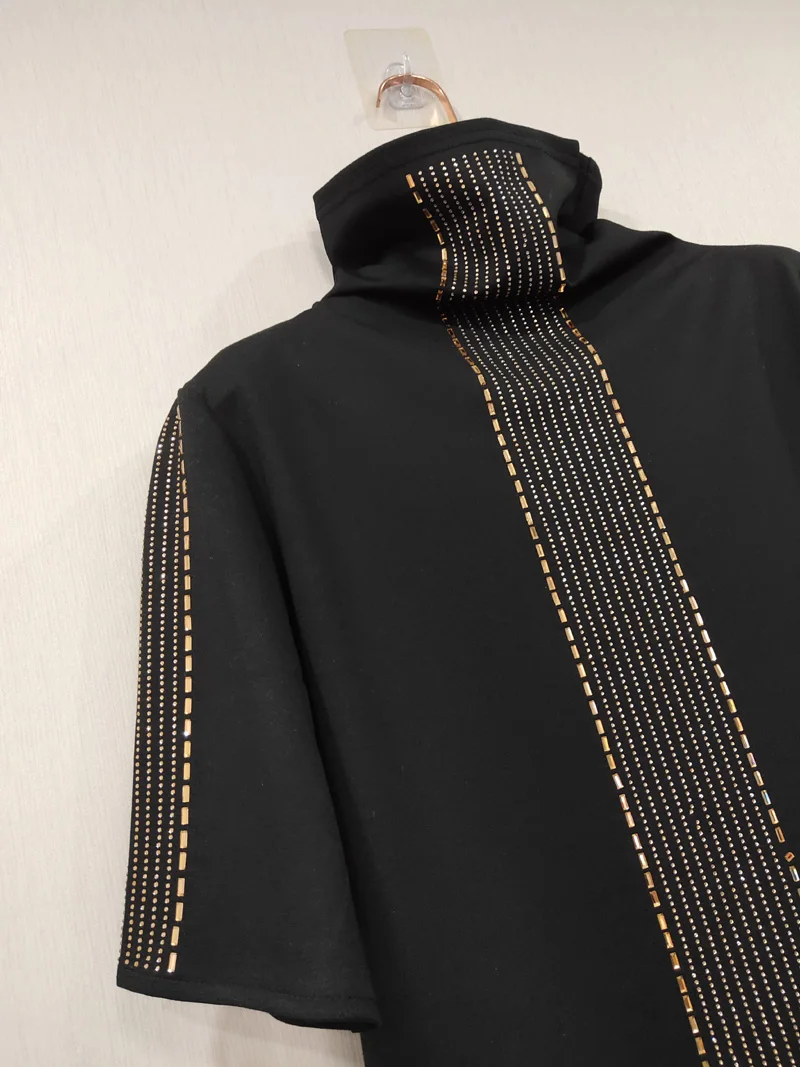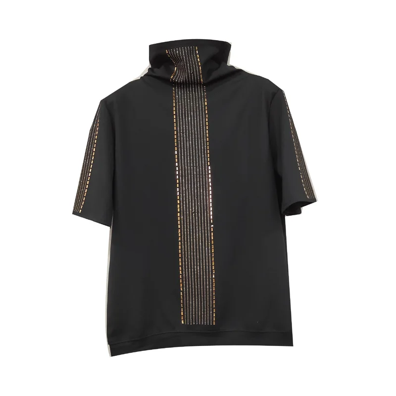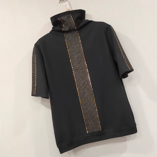 Greatest Women's Roman Cotton Tshirt Women Hot Drilling Diamond T-shirt Turtle-Neck T-shirts Loose Short Pul