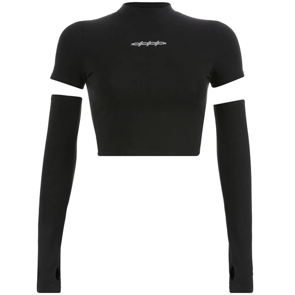 Finest Women Casual slim black t-shirt long sleeve crop top print detachable 2019 summer tshirt basic shor